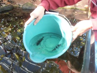She continued, “I had an aquarium, so he gave the fish to me.  I put them in there, and they’ve been there all these months, growing, doing well.  But they’ve started to become bullies, and it was time for me to get them out of my aquarium.  I’ve been meaning to bring them up here for awhile, but just never got around to it.  I don’t know why I brought them here today.”