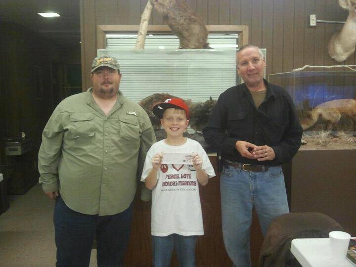 | A.J. with his instructors, holding his Hunter Ed certificate! |