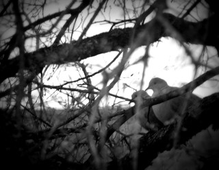 I looked out my bedroom window this afternoon, and caught a glimpse of a pair of doves, snuggled close together on a branch of a tree.  Mates already, they huddled against the cold rainy wind, and it made me smile.  Life’s easier whenever you have someone by your side, on good days, as well as bad.